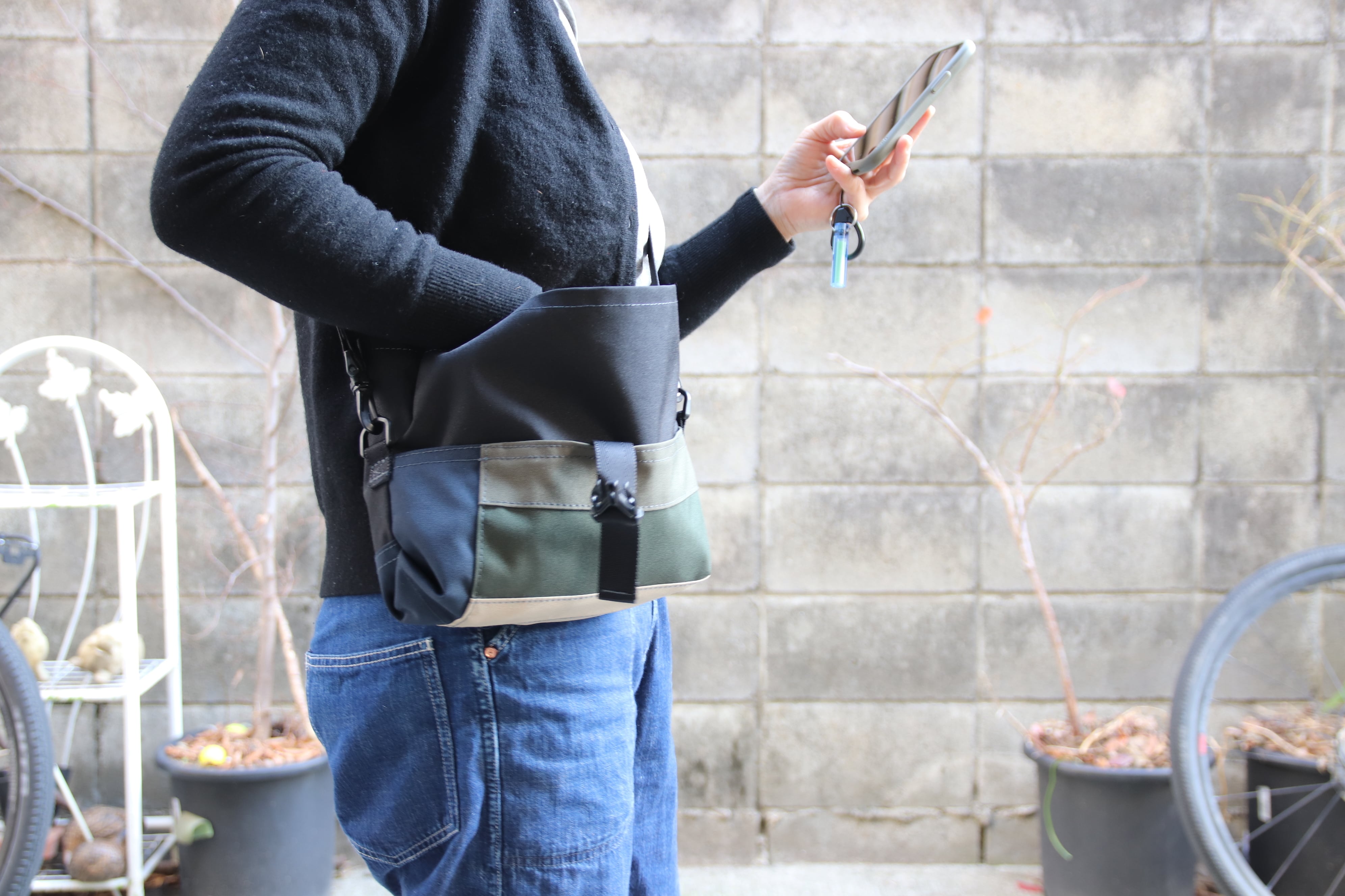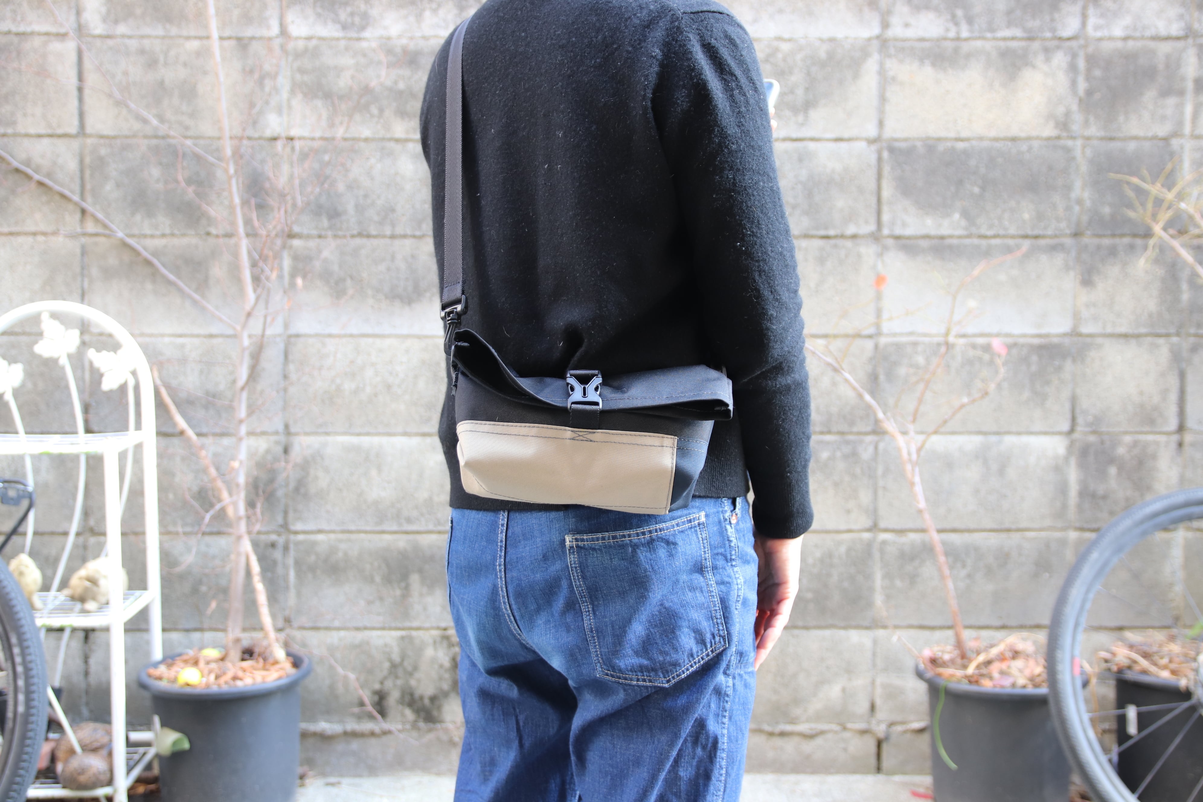 アジャスター付きの全長125cmのショルダーベルトがついていますが、ライドの時はウェストポーチとして使えるようプラスティックバックルのカチッとがベルトについてますのでトイレで焦る心配はありません。