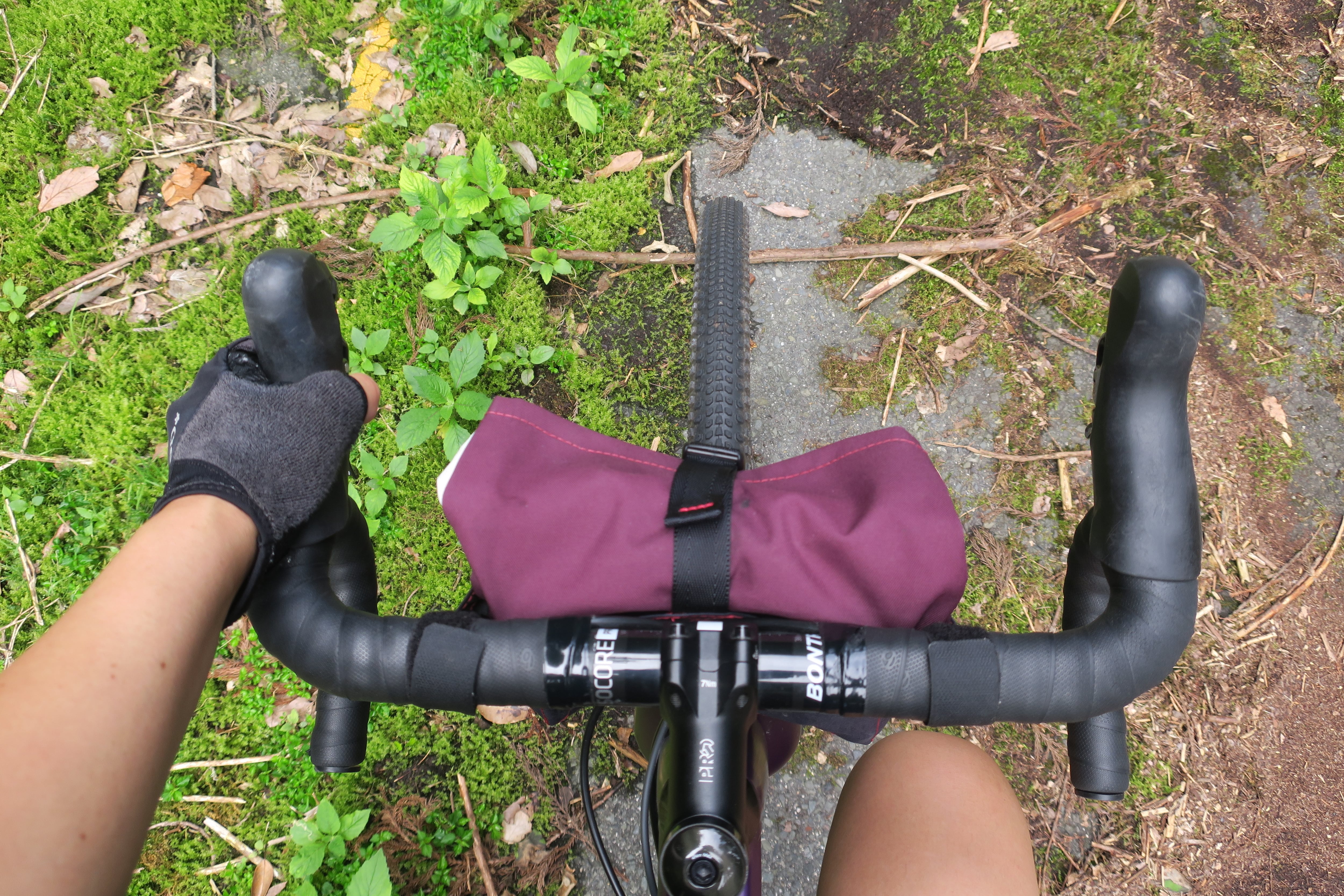 コゼバッグ的には、予備チューブと簡易工具はサドルの下につける小型のサドルバッグよりもハンドルにつけてる方が安心です。何台も乗り換える場合は特に脱着の簡単さが魅力的。バイクジャージの背面ポケットに入れて汗や巻き上げる地面の水で汚れる心配をするよりも、ポイポイとハンドルバッグに入れておく方が、案外安心だな、と思うのです。