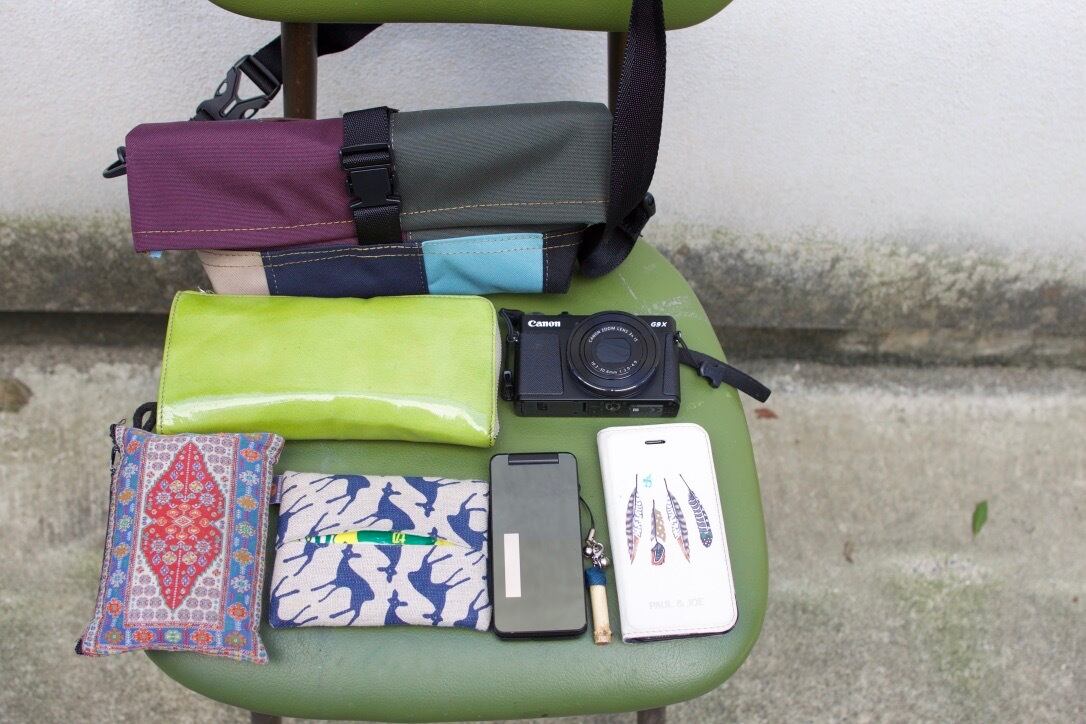 ノーマルタイプは日常必需品に加え二つ折り財布が入ります。