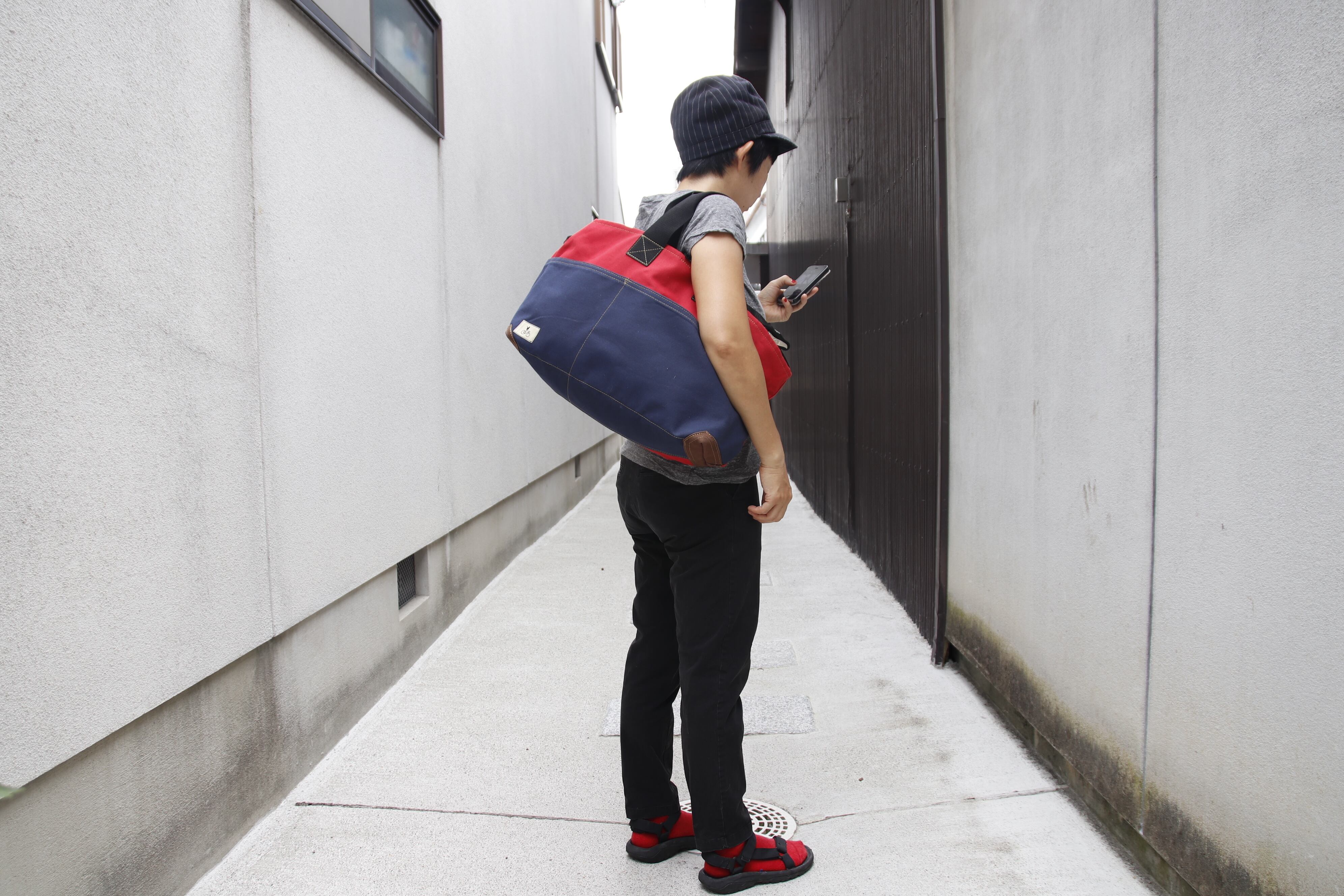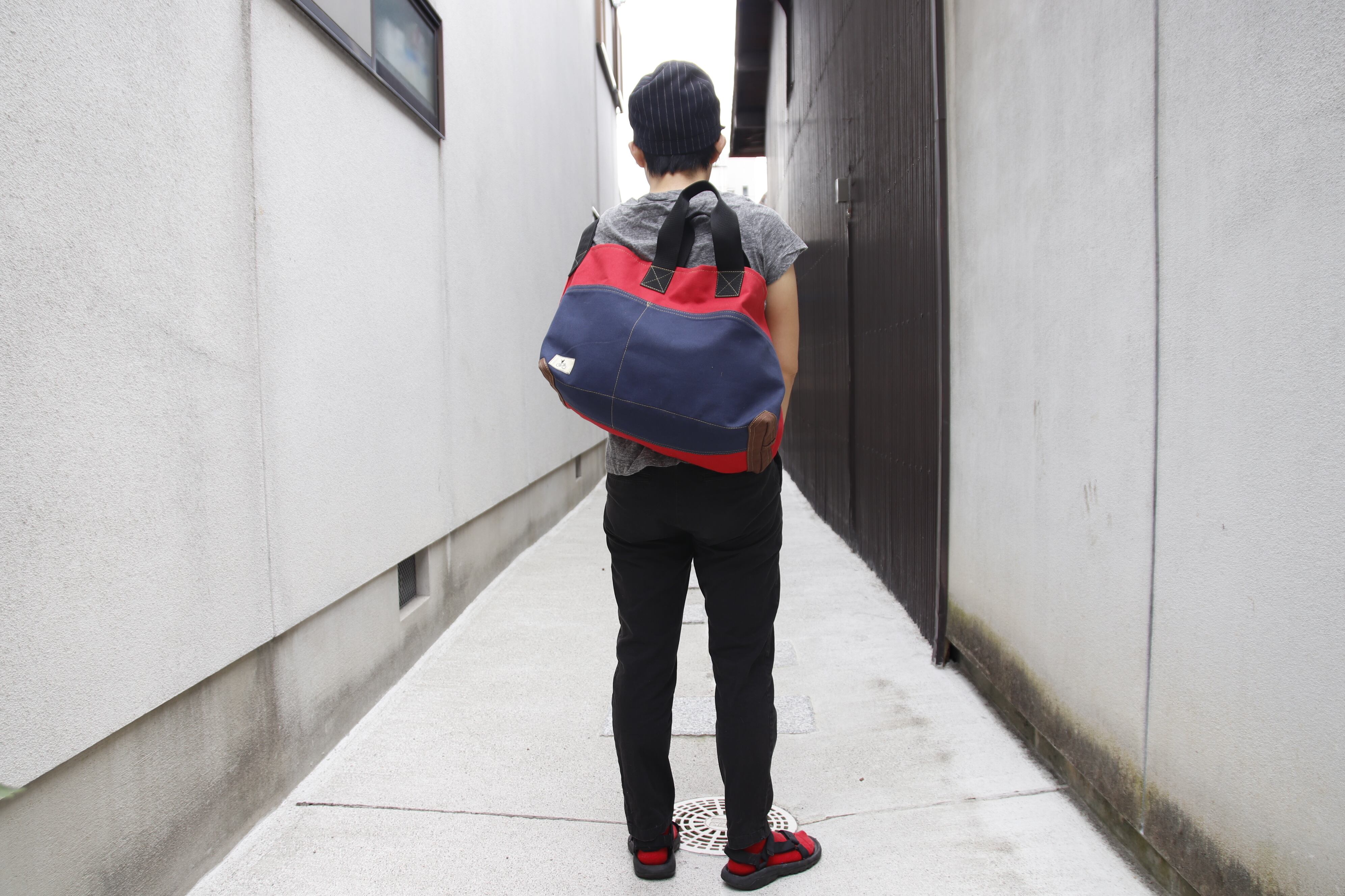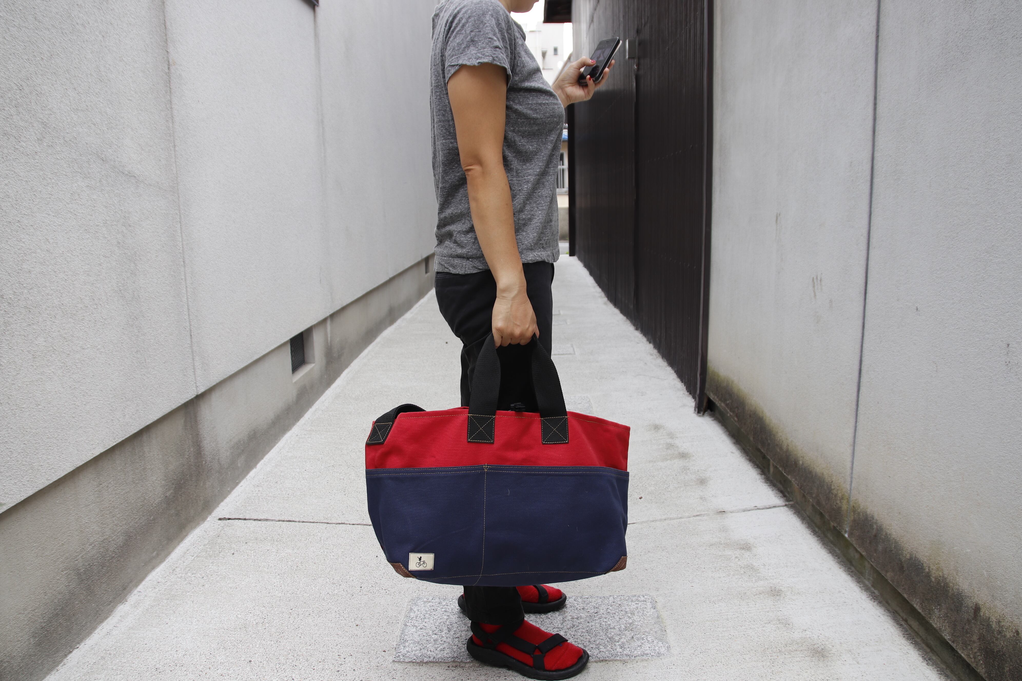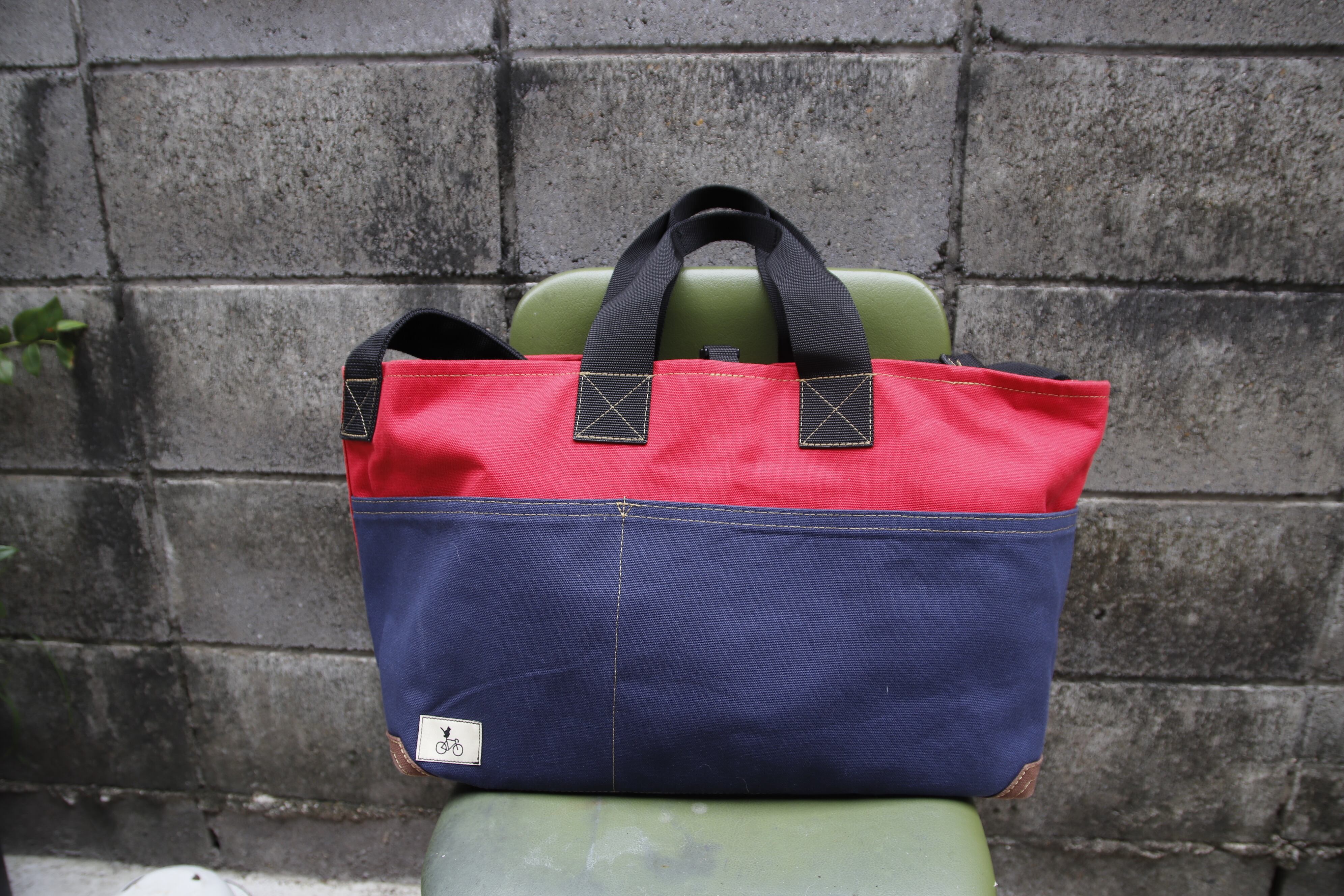 トート型メッセンジャーMサイズ 赤×紺×茶色